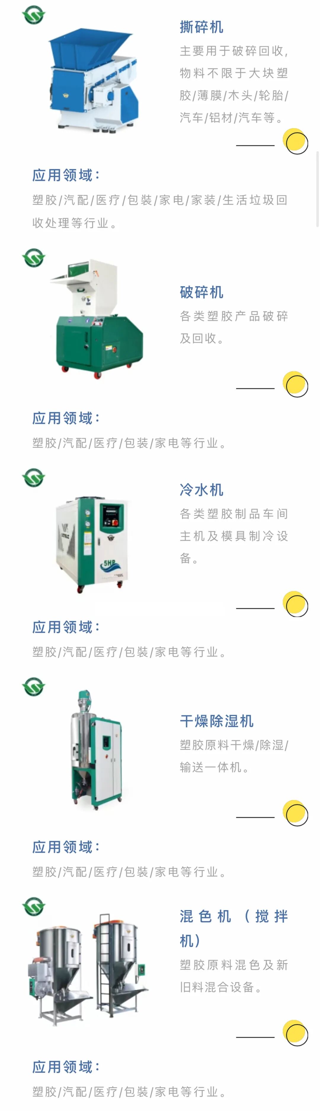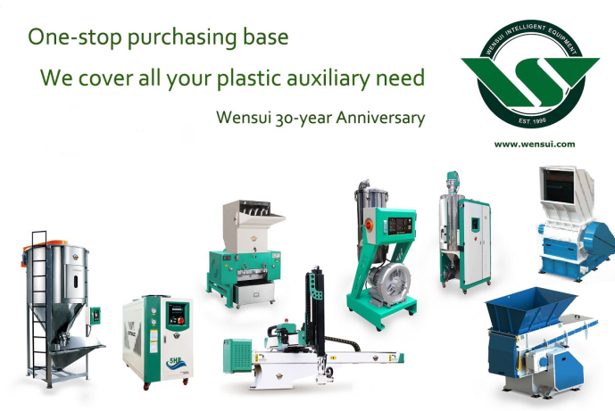 一站式吹塑车间辅机采购基地: 破碎机、干燥除湿机、吸料机、冷水机、模温机、机械手等,可为每一吹塑车间提供个性化、自动化、智能化的水、电、气整厂规划服务。